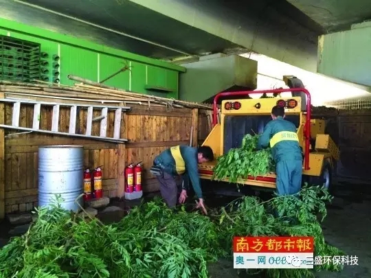此外,我市还建设了树枝粉碎场,将日常绿化管理中产生的废弃树枝集中粉碎处理。目前,粉碎场共配备4条生产线,日均处理废弃树枝80吨,年处理能力为12万立方米,生产树枝碎料约1.2万吨。