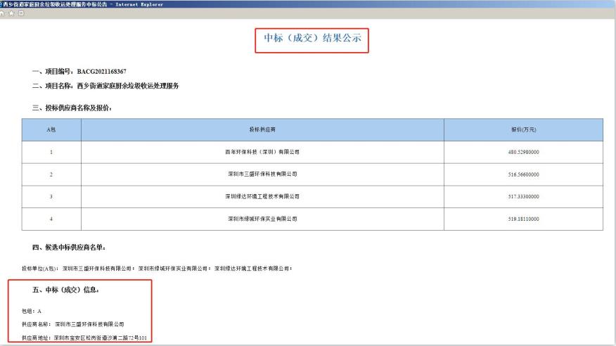 2021年4月29日,深圳公共资源交易中心发布中标公告:kaiyun开云官方网站(中国大陆)科技有限公司中标西乡街道家庭厨余垃圾收运处理服务。